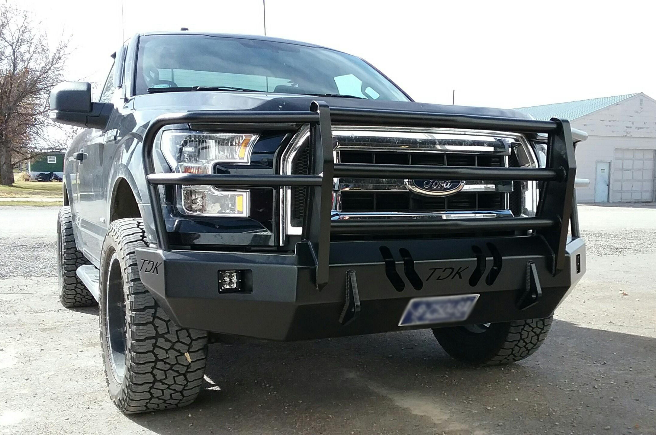 If your truck faces difficult terrain and hazardous driving situations, a Throttle Down Kustoms bumper with grille guard helps protect its radiator and engine compartment. This mig welded bumper is crafted from solid PNO steel plate, 3/16″ or 1/4 inch” thick, and the grille guard is made of 2″, 1 3/4″, and 1 1/2″ .120 steel wall tubing, resulting in uncompromising durability to protect for your rig. Powder coating and receiver hitch options are available to customize your TDK grille guard.