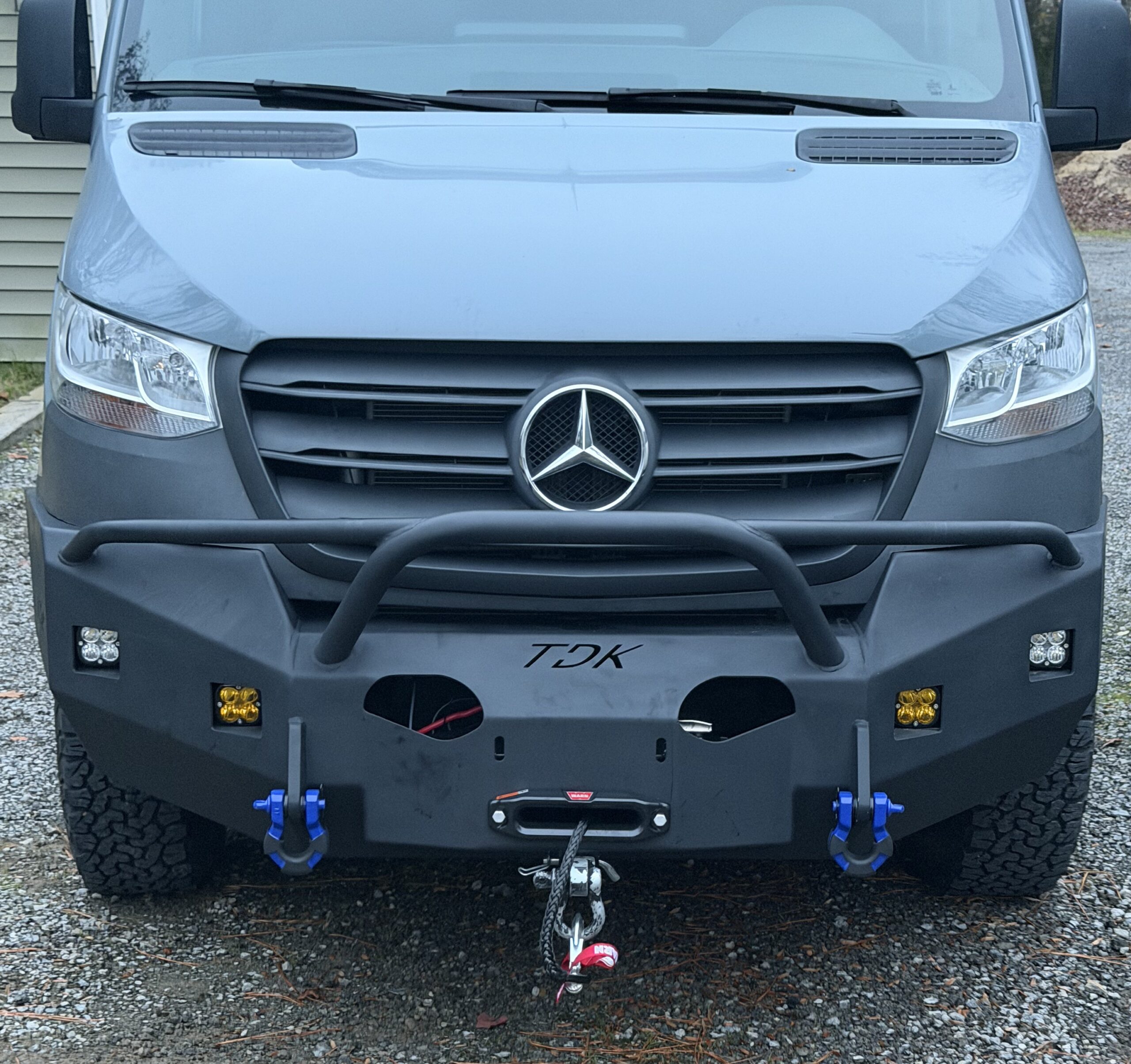 If you use your van for off-roading or heavy duty towing, a Throttle Down Kustoms PreRunner bumper is for you. If you’re driving a 2019-2024 Mercedes Sprinter Van, this steel PreRunner bumper offers extra protection and durable style for your van. You’ll be glad you upgraded. TDK PreRunners are made in the USA, are hand-welded, and can be powder coated in one of three colors. This bumper is easy to install, and the superior craftsmanship means your bumper may outlast your van. We build our steel van bumpers so well that they’re guaranteed for life.